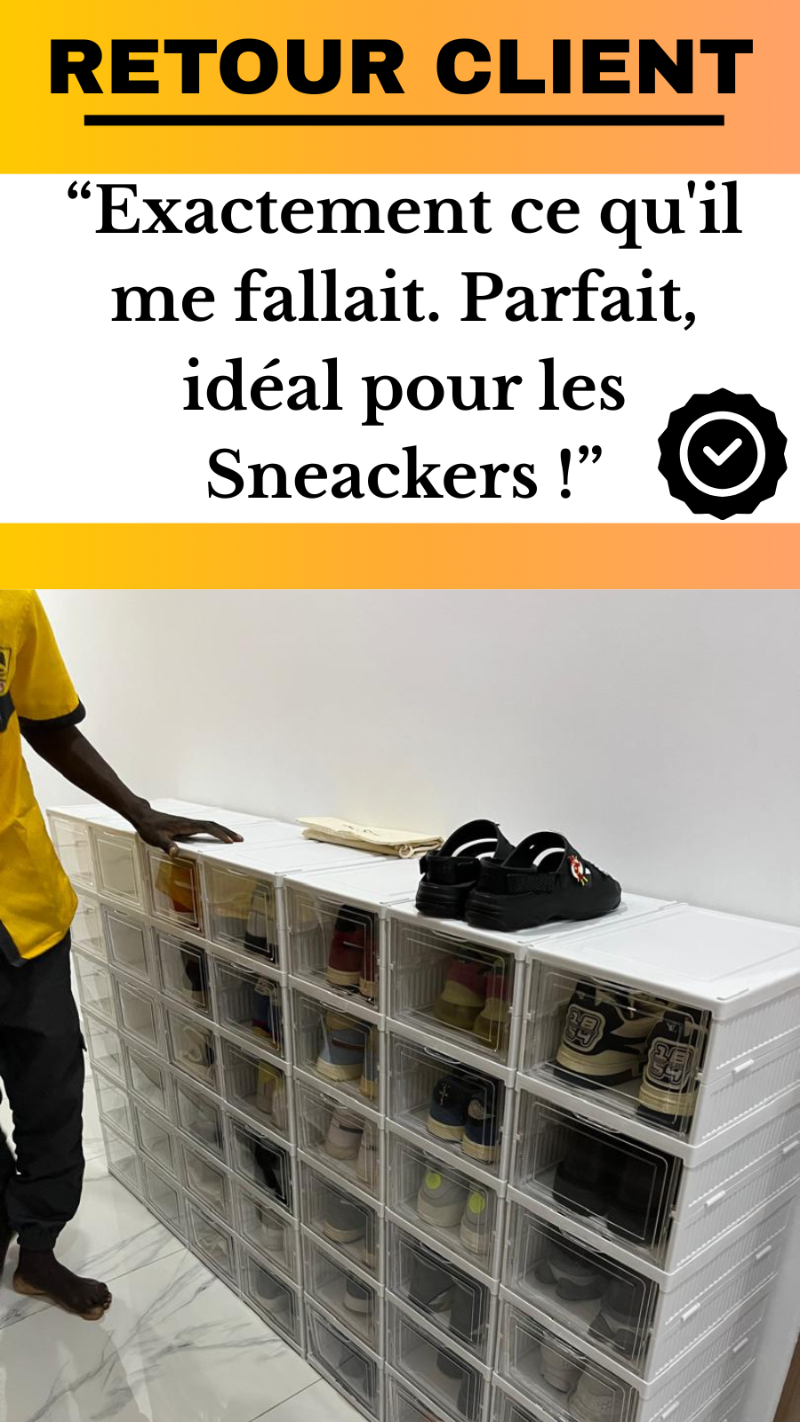Avant, mes paires prenaient la poussière même quand je les portais rarement. Maintenant, avec ma SneakBox®, elles restent nickel, propres et bien protégées tout le temps 😍